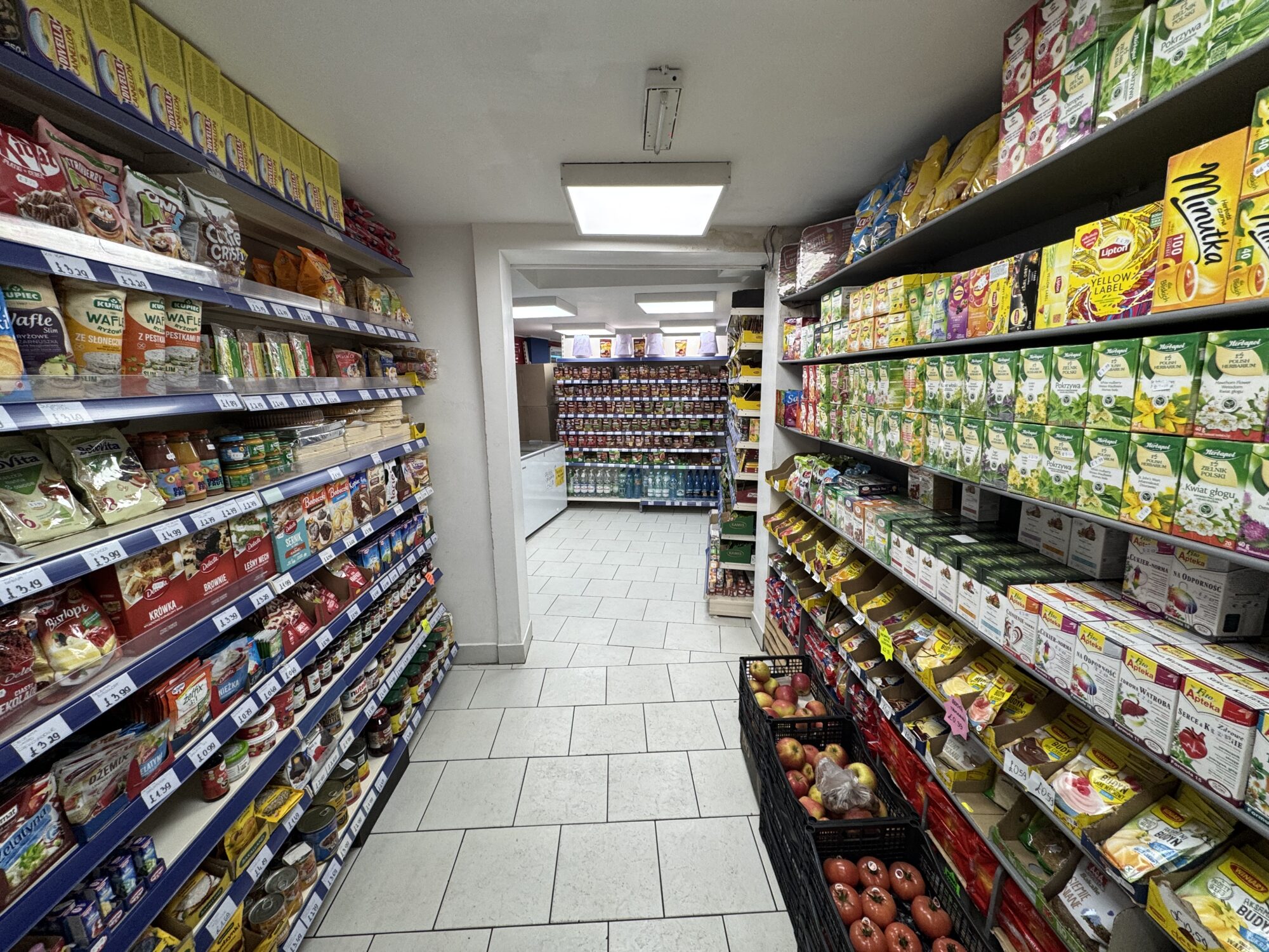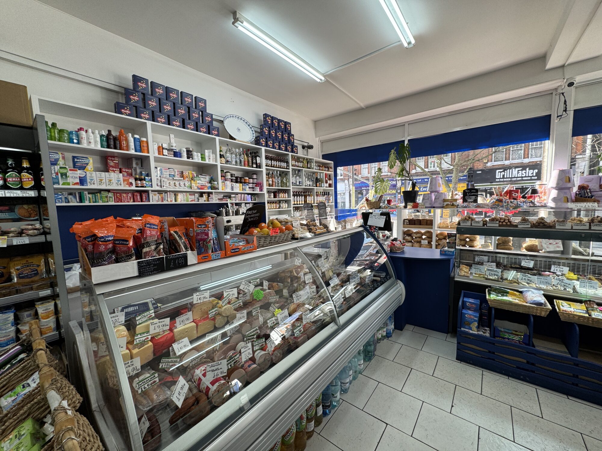 DESCRIPTION: – The property comprises a ground corner premises with return frontage arranged as retail space and rear storage. The ground floor is arranged as a mainly open plan sales area currently laid out as a delicatessen / supermarket. In addition to the sales area, there is some ground floor ancillary storage to the rear. The property has good ceiling heights, suspended ceilings, and a highly visible frontage.