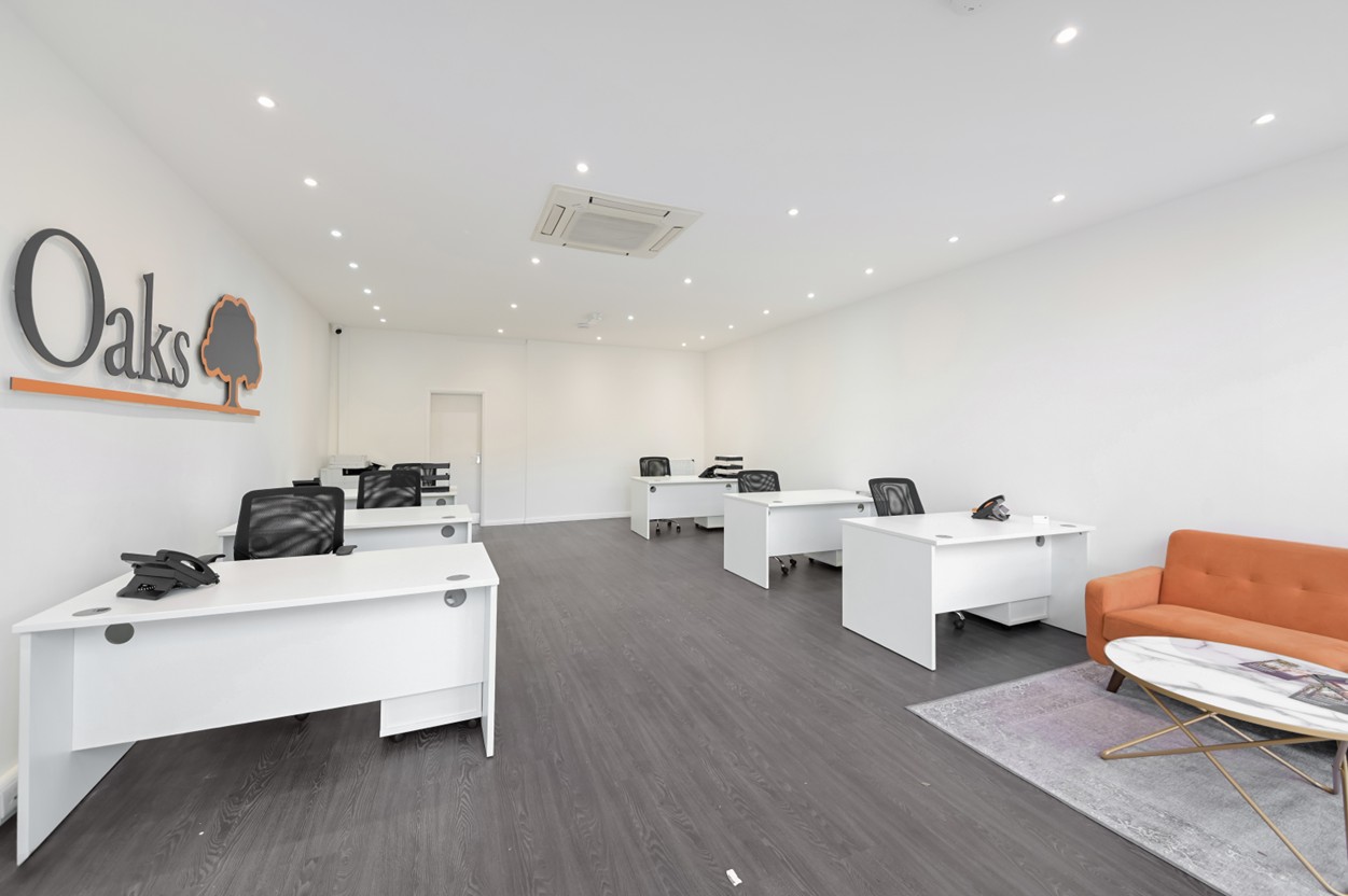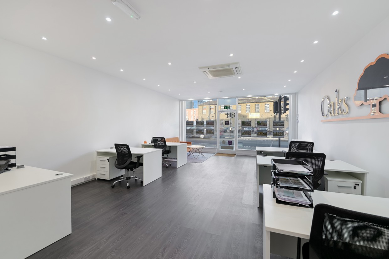 DESCRIPTION: – The property comprises a recently refurbished ground floor shop fronted premises and is end of terrace. The property has an aluminum shop front, suspended ceilings with spot lights and air conditioning (not tested). There is a secondary means of escape to the rear. The property was most recently used as an estate agent’s office; however, it is considered suitable for a variety of uses within Class E such as retail, professional services, and quasi medical uses.