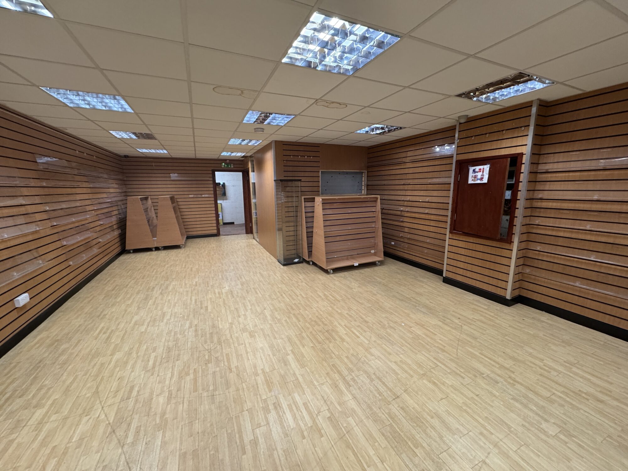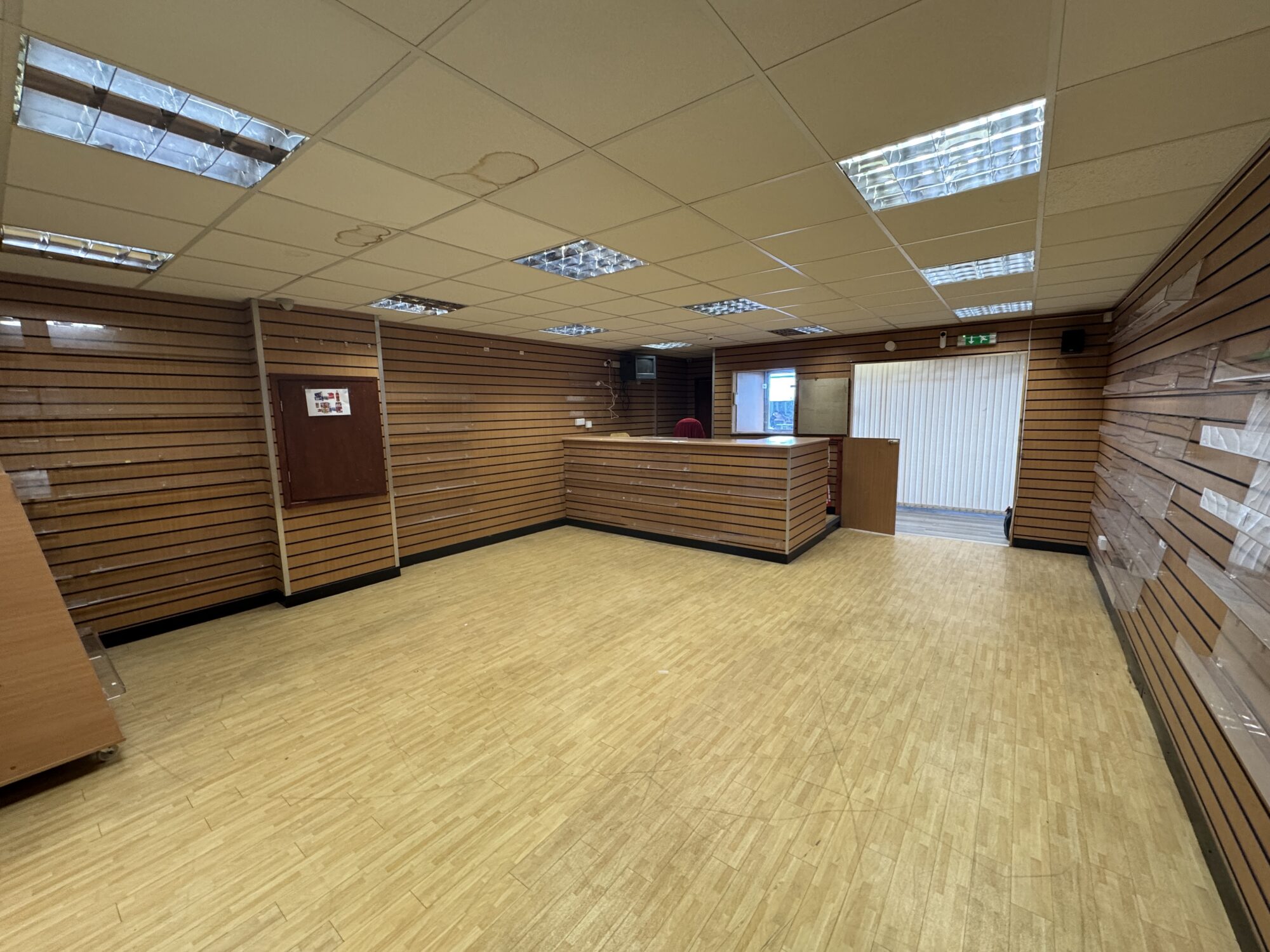 DESCRIPTION: – The property comprises a ground floor lock-up shop fronted premises suitable for a variety of trades. The property has an aluminum shop front, shutters, and a hung ceiling. An internal office area has been partitioned and there is a kitchenette and WC to the rear. There is rear access to a communal loading area (no parking).
