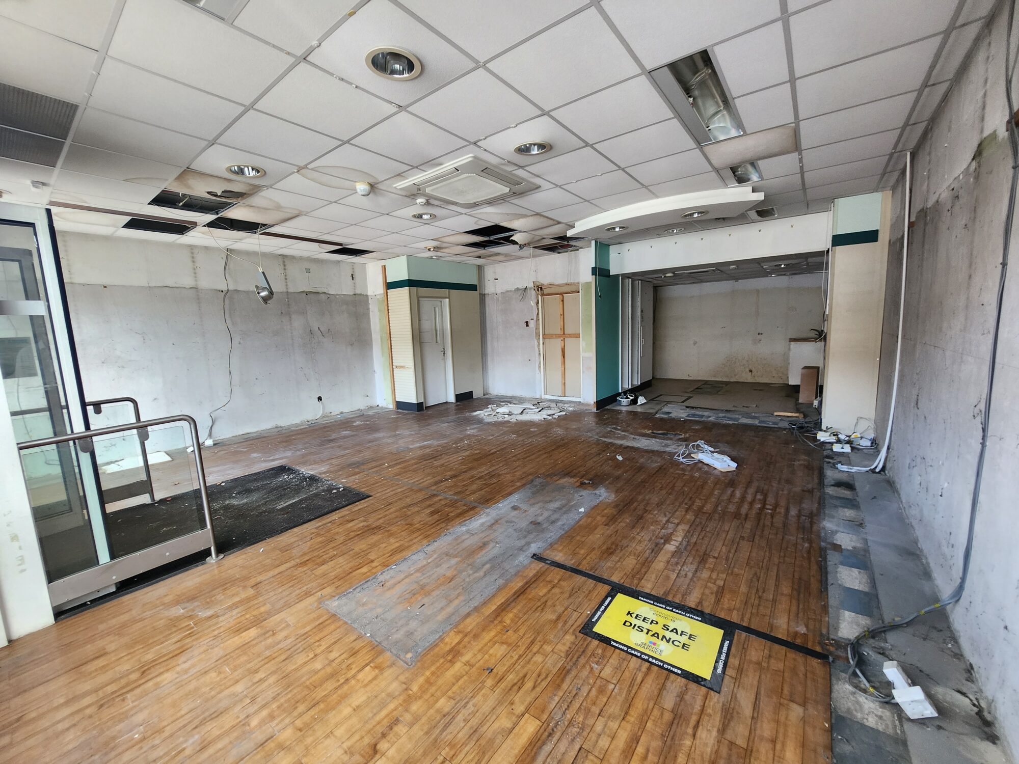 DESCRIPTION: – The property comprises a ground floor Class E mid-terrace commercial unit with a self-contained two-bedroom flat above. The ground floor is arranged as a sales area and several storage areas. The upper part is accessed via an external staircase. There is a service road to the rear. The property was last used as a pharmacy but is considered suitable for a variety of uses.