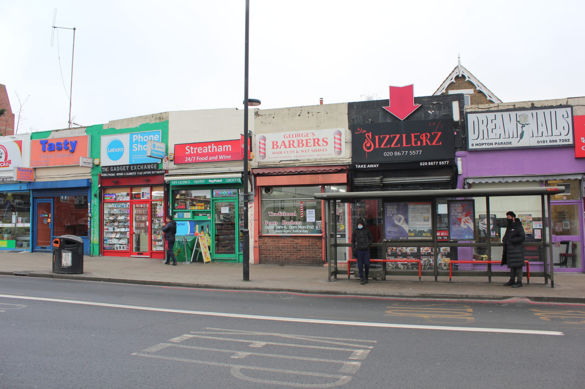 LOCATION: – The property is situated fronting Hopton Parade in a highly prominent position opposite Streatham Station and the large Tesco superstore. Streatham High Road forms part of the main A23 commuter route and the property benefits from vast quantities of passing vehicular traffic which is particularly heavy during the rush-hour periods. There is a bus stop immediately outside the Parade which increases foot flow to the vicinity and the surrounding area is a densely populated residential catchment.