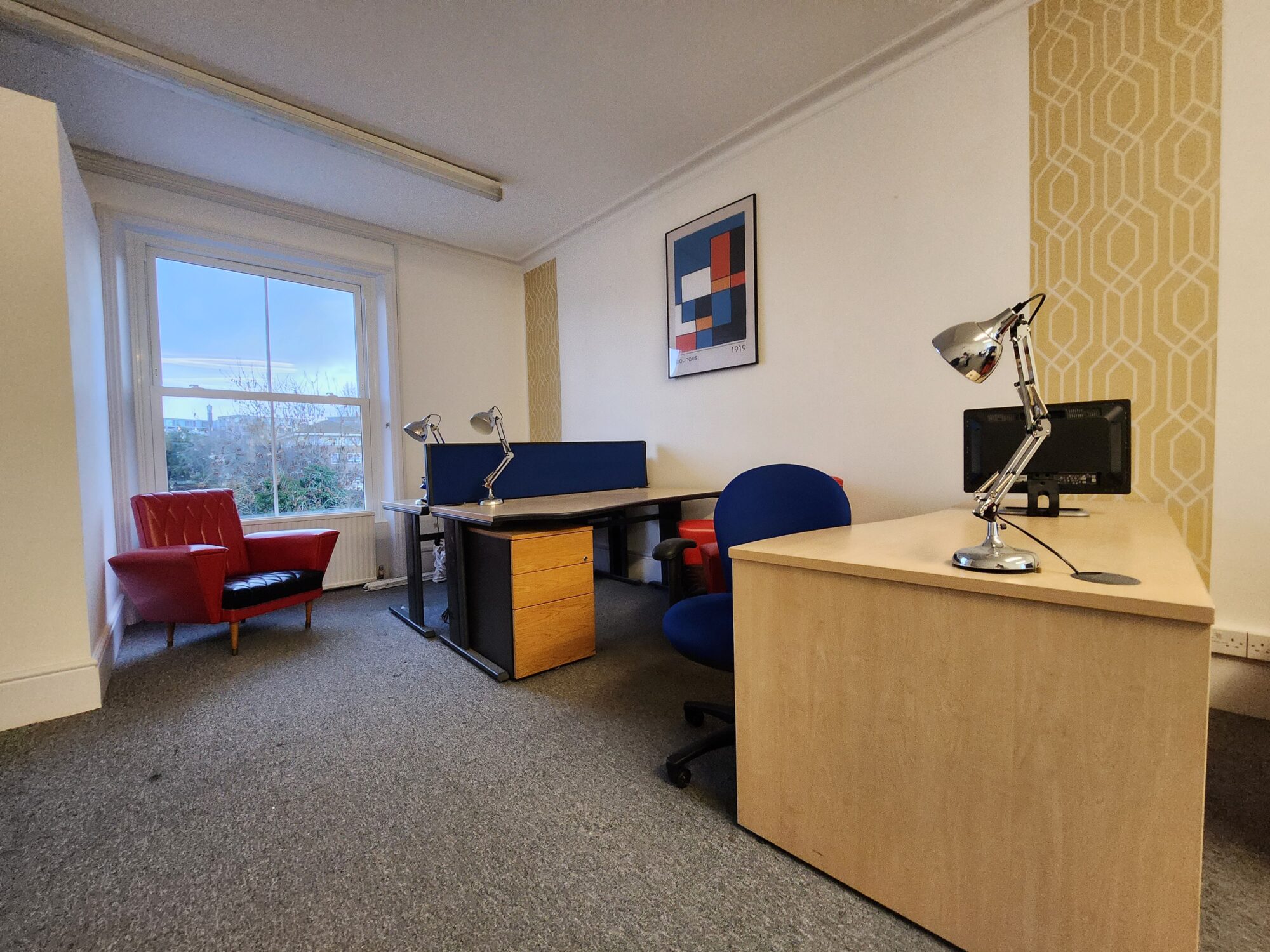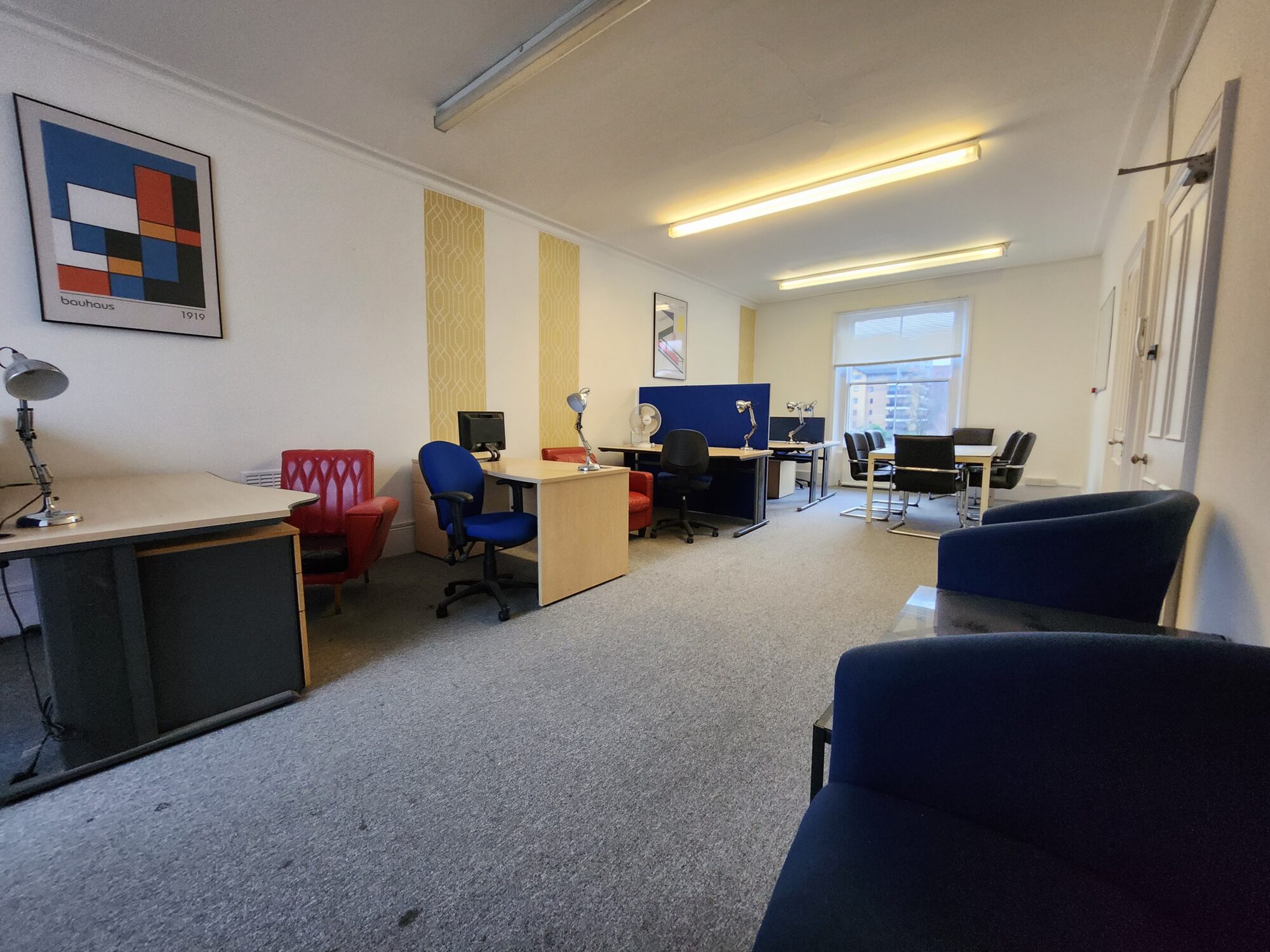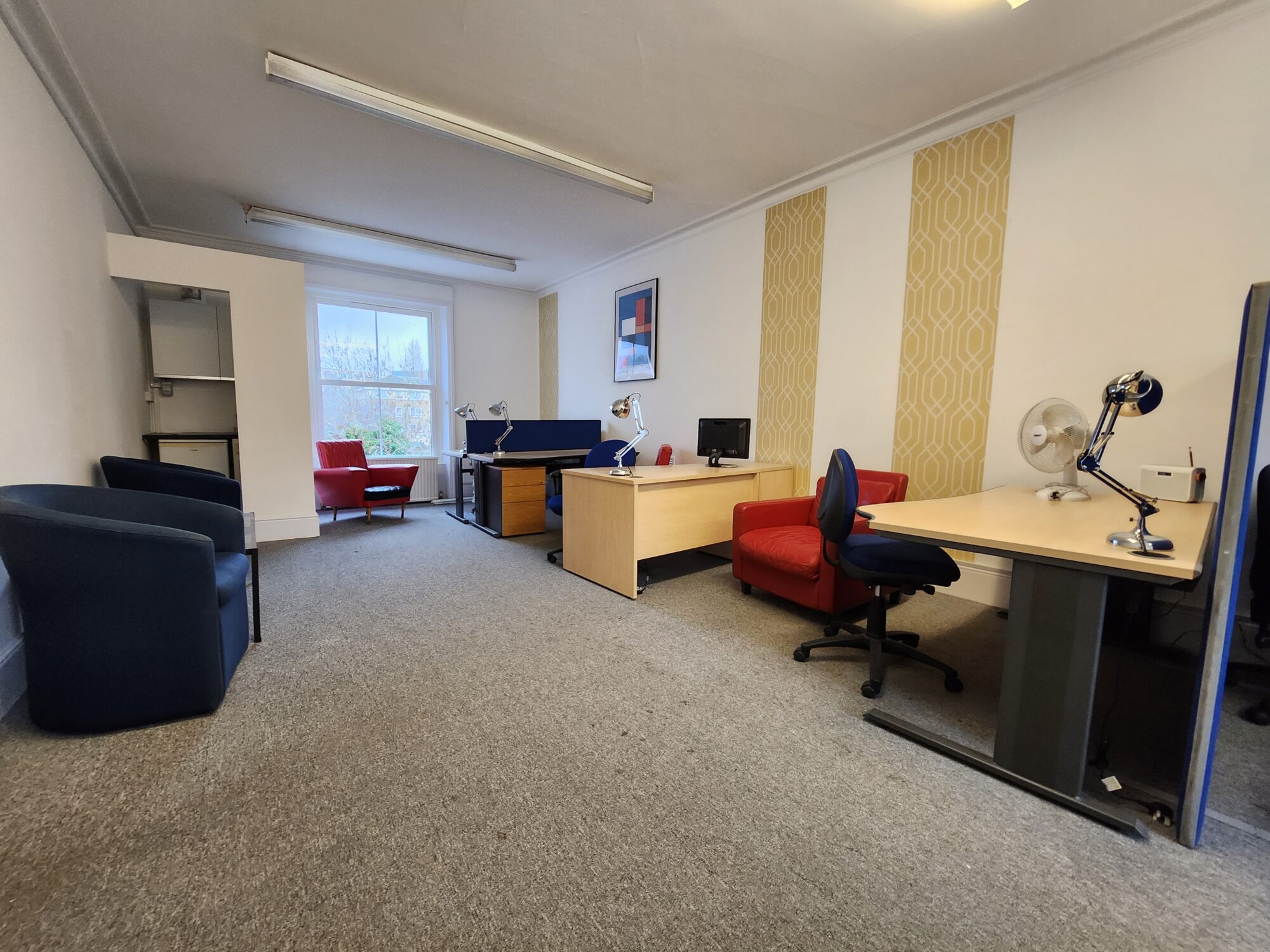 DESCRIPTION: – An impressive period office building of modernised offices available on flexible terms. The property benefits from central heating and good natural light. The monthly rent is inclusive of rates, heating and lighting but excludes internet, telecoms and contents insurance.