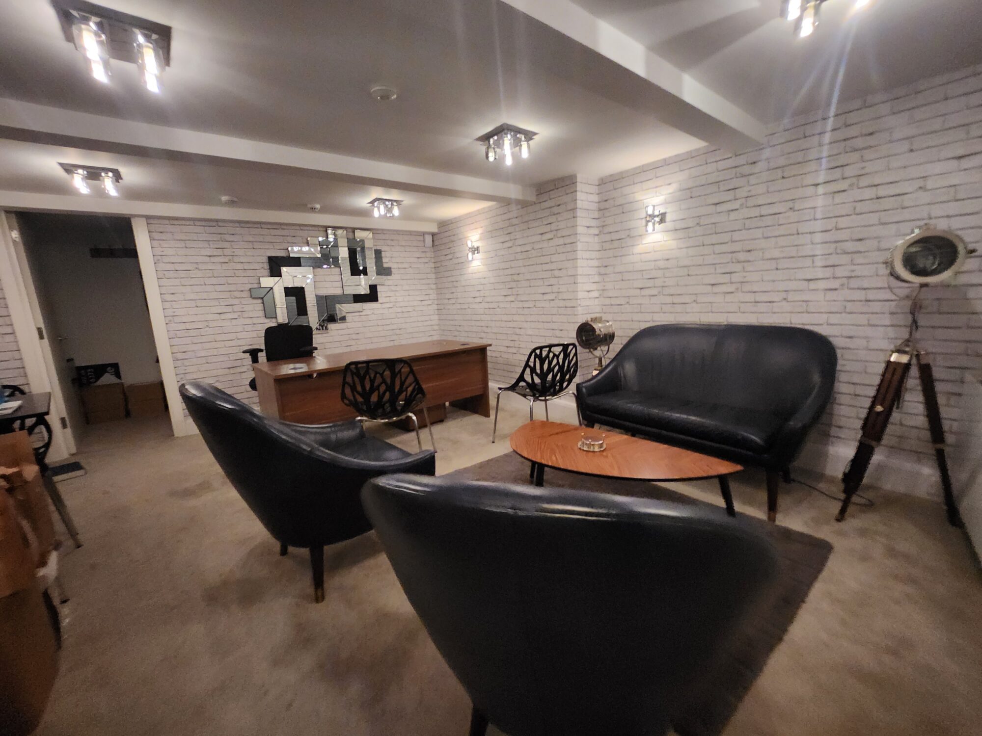 DESCRIPTION: – The property comprises a ground floor class E unit with a kitchenette, WC, and a full height basement partitioned as a meeting room and ancillary storage spaces. The property has a part glazed frontage, part hung ceiling with air conditioning (not tested) and a rear fire escape on the ground floor.
