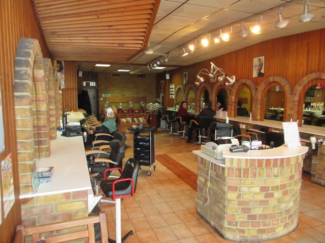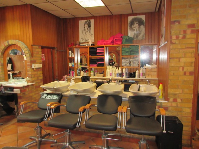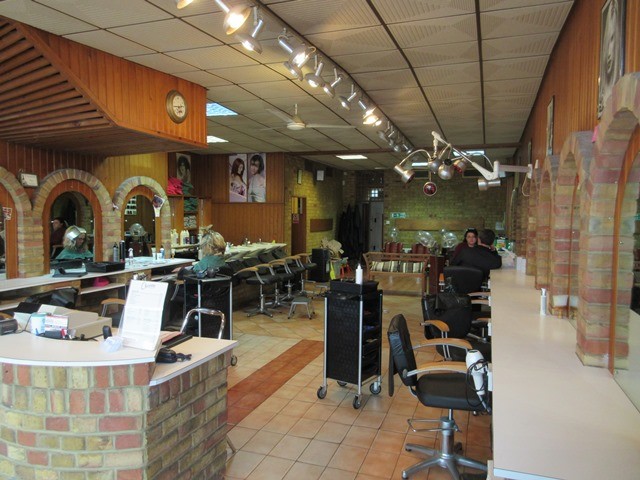 The property comprises a lock-up shop with full height display windows and a central double-door entrance. Double doors at the rear give access to a shared yard for loading and deliveries. The space is largely open-plan with a few central pillars and has been used as a hairdressing salon. There are separate male and female WCs and a small tea-making area.